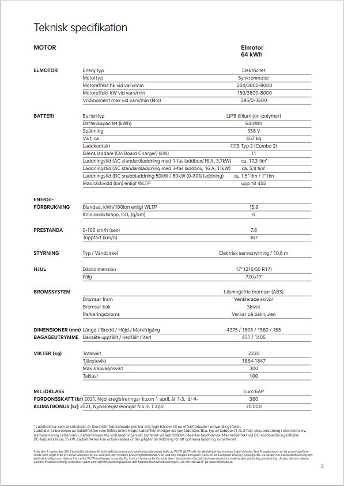 Motornamn 64 kWh (150 kW)