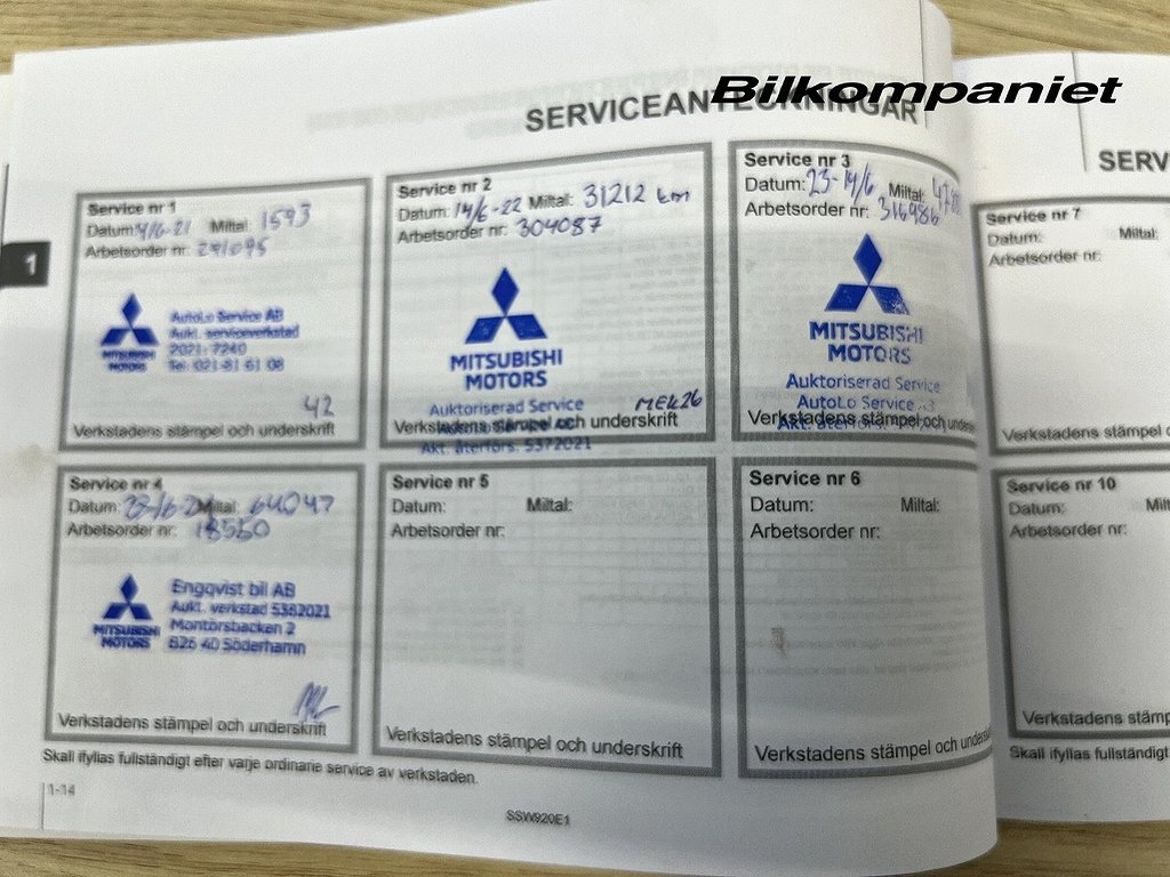 Uppgifter om bilen som handlaren kompletterat med.